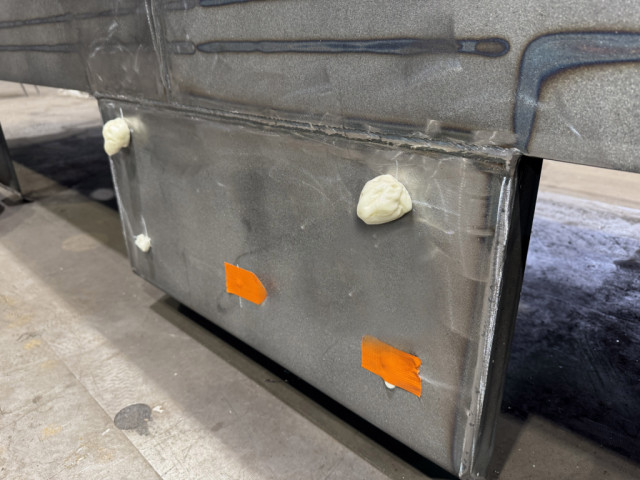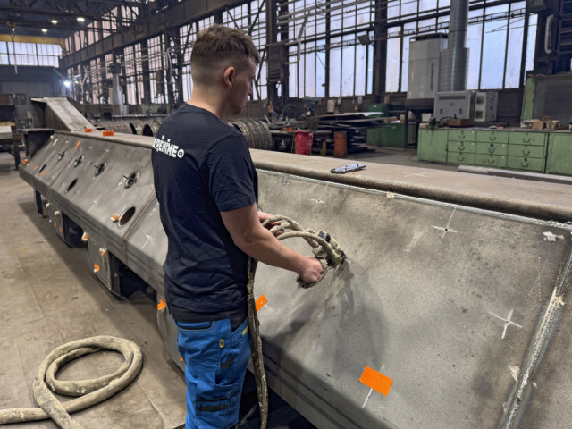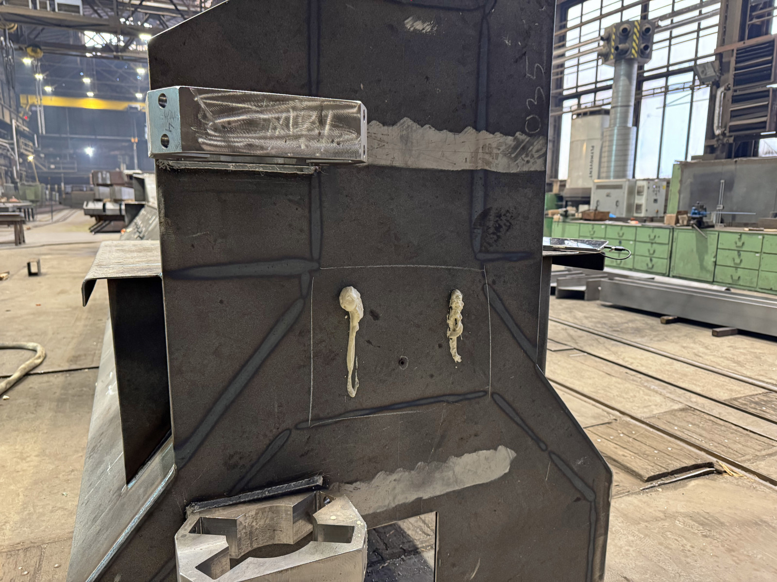 Nejprve bylo nutné do konstrukce připravit systém aplikačních otvorů, které umožnily přesné naplnění dutiny pěnou. Otvory byly předem navrtány ve vhodných místech svařence, aby bylo možné rovnoměrně zaplnit celý vnitřní prostor.